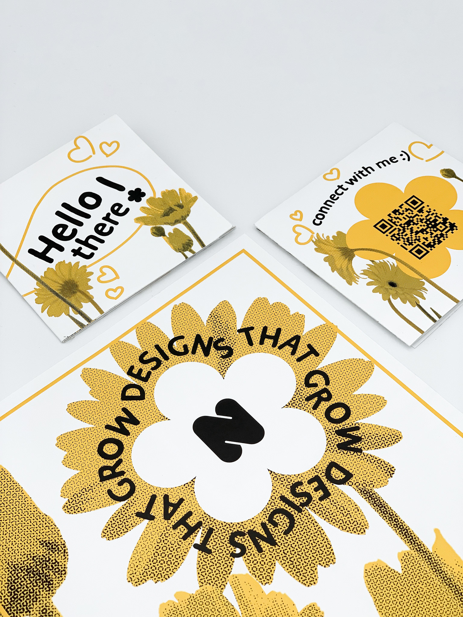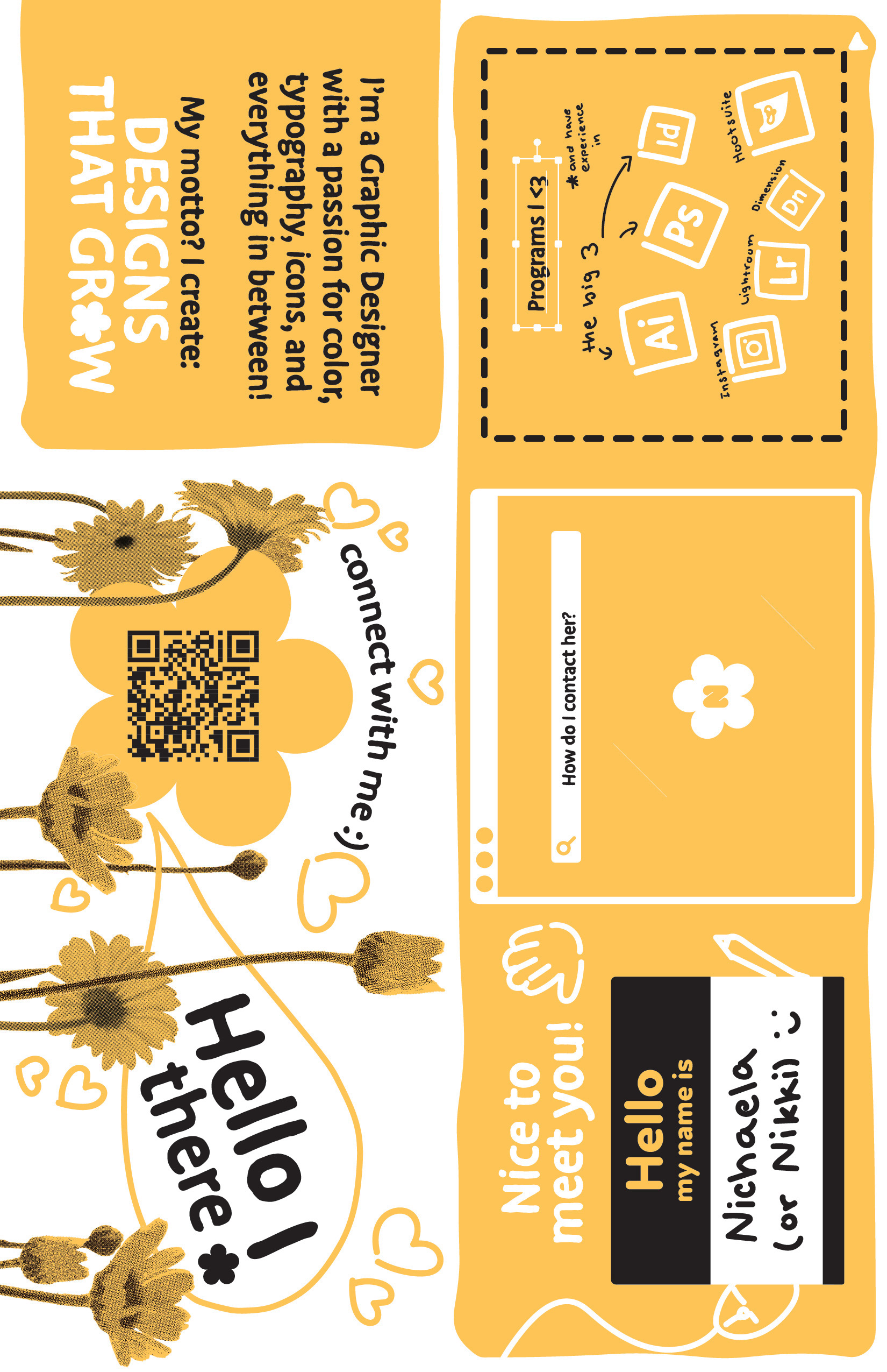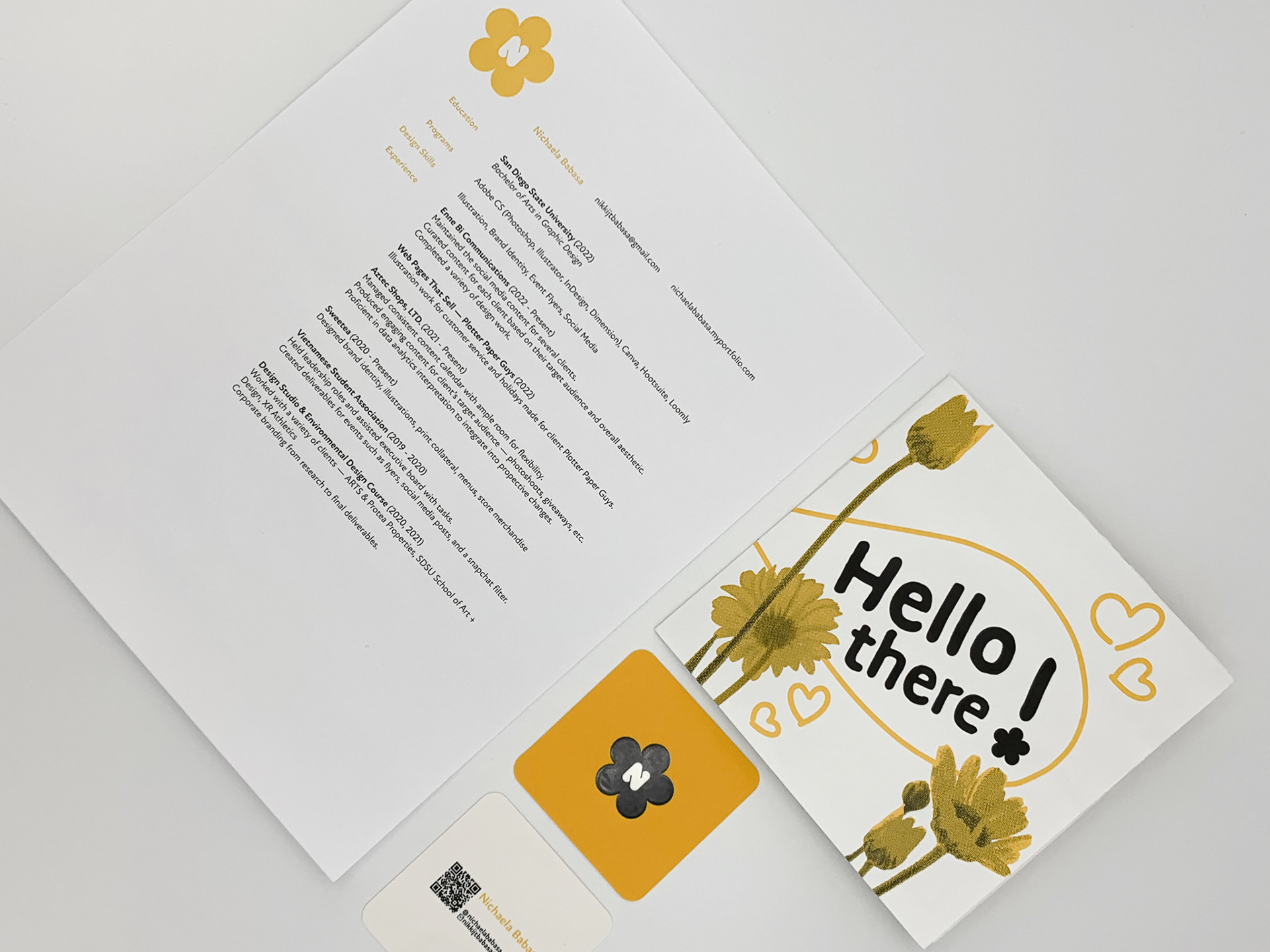 Print collateral for the SDSU 2022 GD Senior Review was necessary so the design had to fit into the spaces of a Tabloid promo piece, a business card, and a resume.